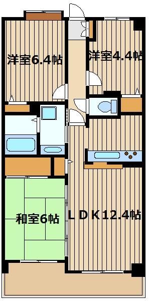 | 築年月 | 1998年10月 | 間取り | 3LDK( LDK12.4畳/洋室6.4畳/洋室4.4畳/和室6畳 ) | 専有面積 | 66.22m2 |