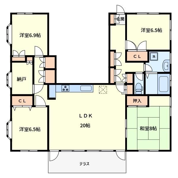| 築年月 | 1990年10月 | 間取り | 4SLDK( LDK20畳/和室8畳/洋室6.9畳/洋室6.5畳/洋室6.5畳/S4畳 ) | 専有面積 | 121m2 |