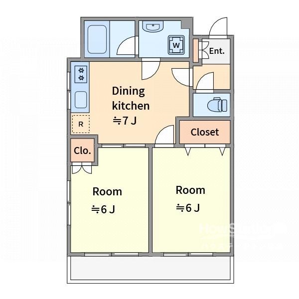 | 築年月 | 1996年3月 | 間取り | 2DK( DK7畳(4階)/洋室6畳(4階)/洋室6畳(4階) ) | 専有面積 | 44.18m2 |