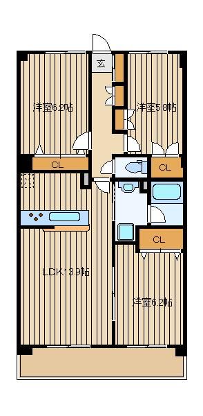 | 築年月 | 2001年3月 | 間取り | 3LDK( 洋室5.8畳/洋室6.1畳/洋室6.3畳/LDK13.9畳 ) | 専有面積 | 71.82m2 |
