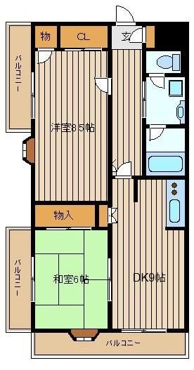 | 築年月 | 1996年3月 | 間取り | 2DK( DK9畳/洋室8.5畳/和室6畳 ) | 専有面積 | 57.75m2 |