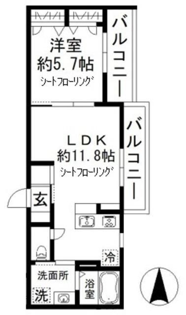 | 築年月 | 2023年3月 | 間取り | 1LDK( LDK11.8畳/洋室5.7畳 ) | 専有面積 | 40.42m2 |