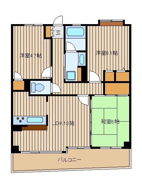 | 築年月 | 1998年9月 | 間取り | 3LDK( 洋室6.1畳/洋室4.7畳/和室6畳/LDK13畳 ) | 専有面積 | 65.8m2 |
