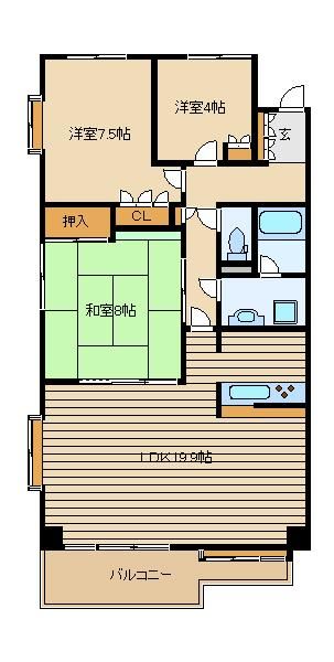 | 築年月 | 1989年3月 | 間取り | 3LDK( 洋室4畳/洋室7.5畳/和室8畳/LDK19.9畳 ) | 専有面積 | 88.99m2 |